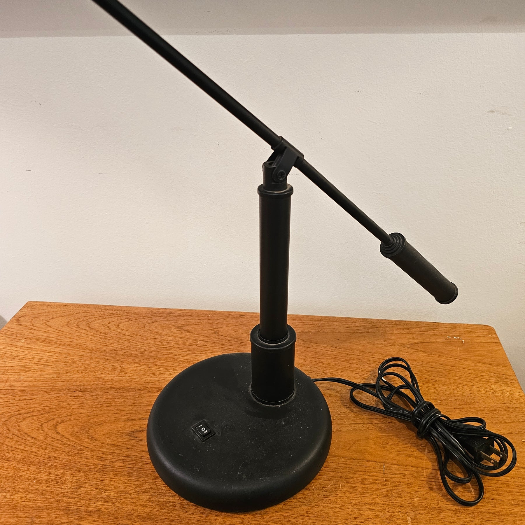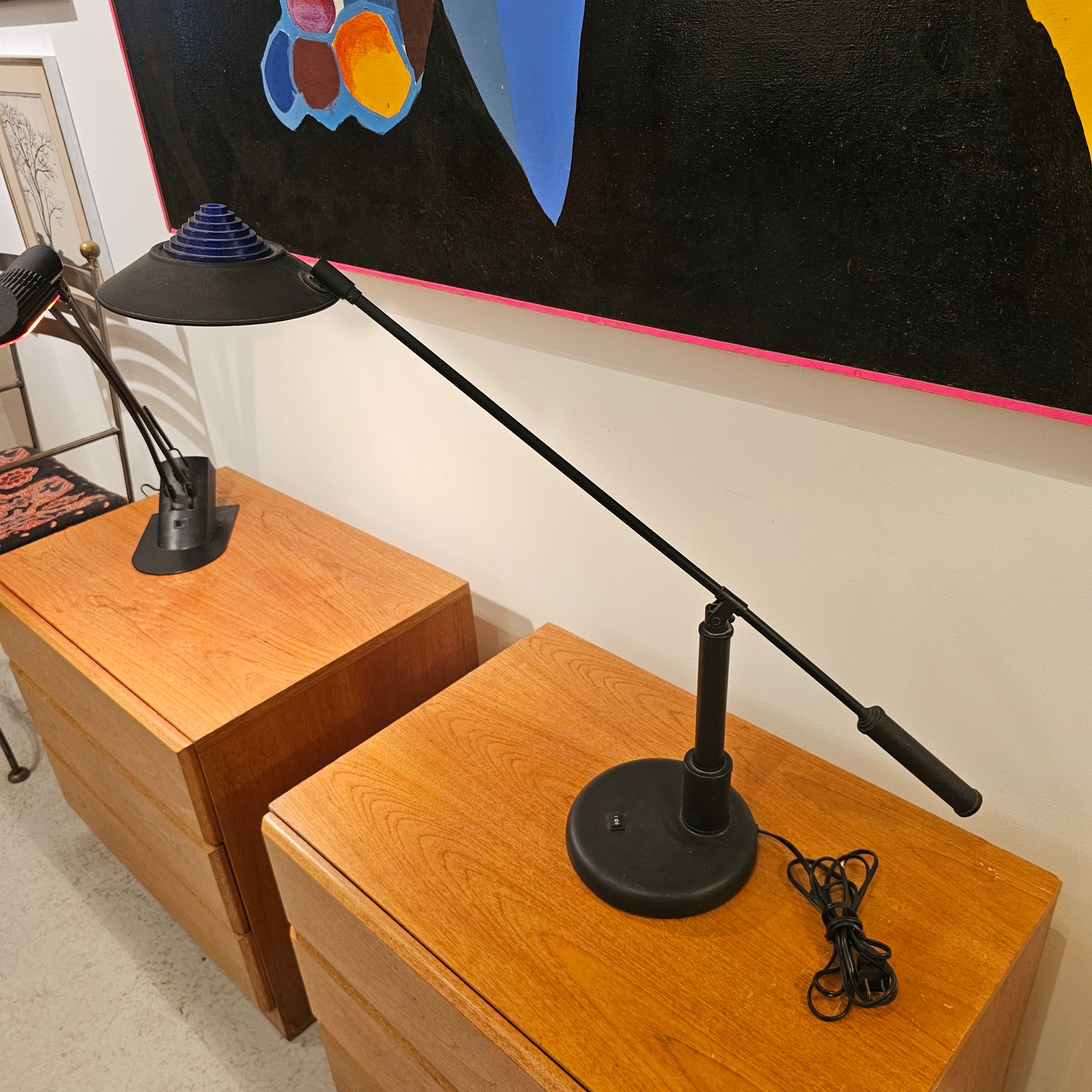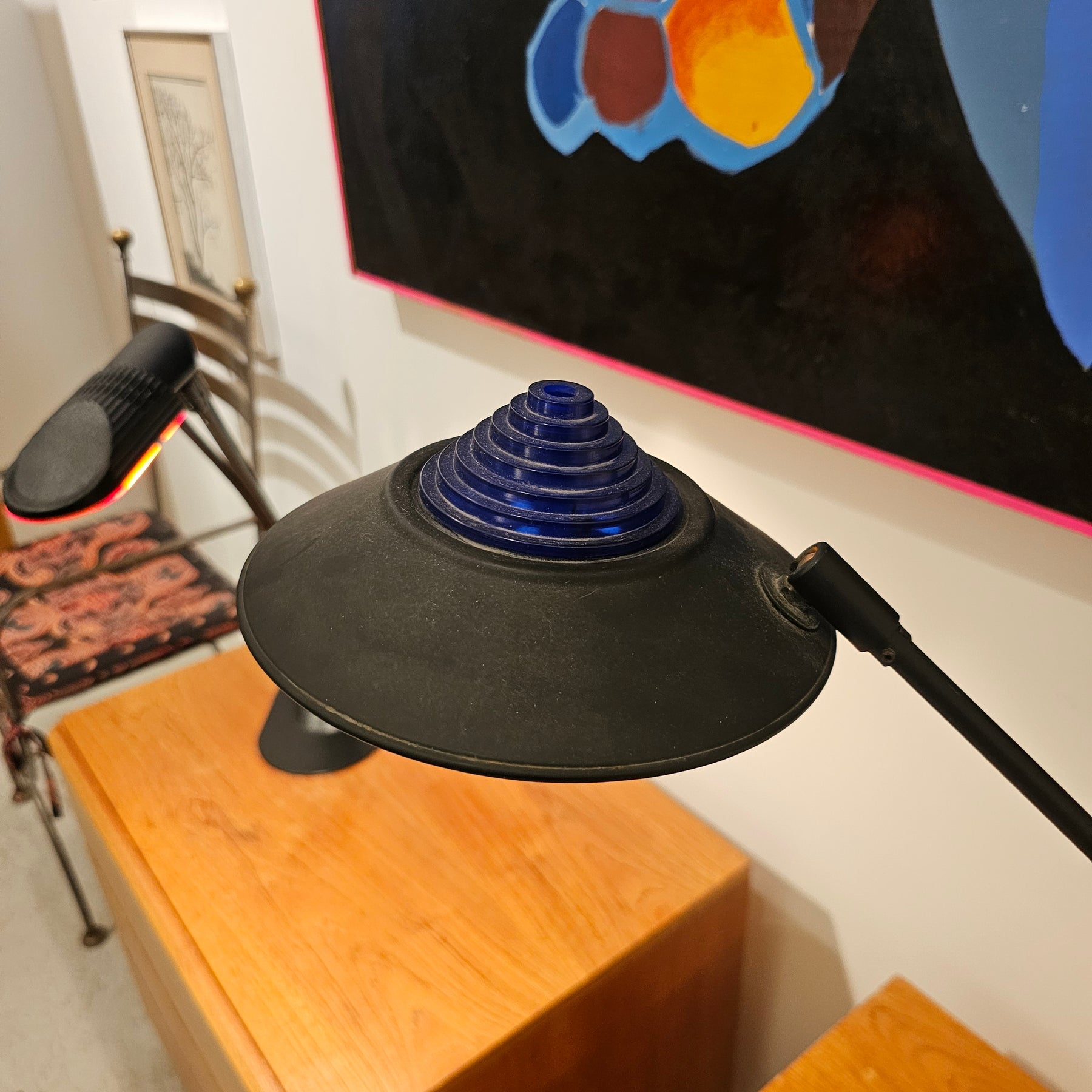 1980s Italian Table Desk Lamp. Glass cobalt shade and minimal black body. Great overall condition.