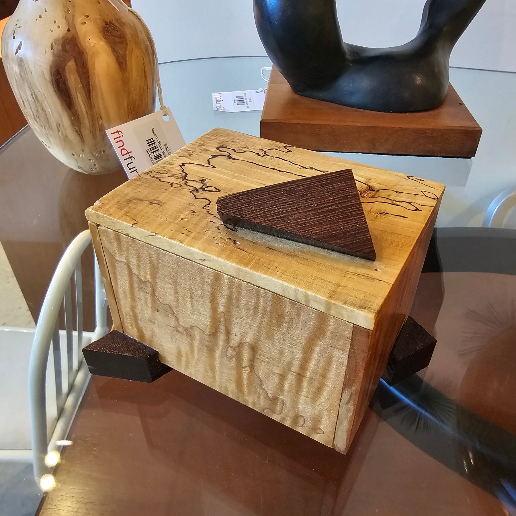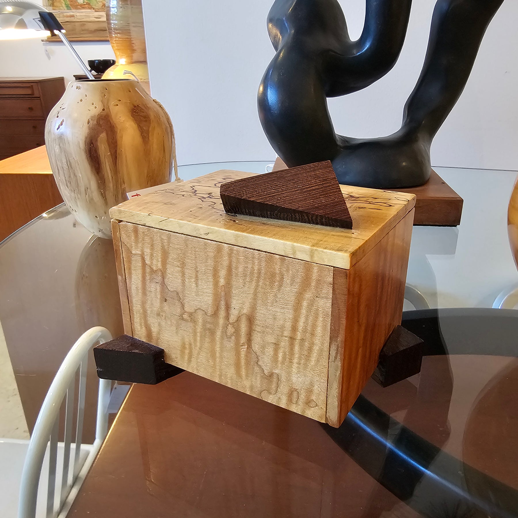 Artist Signed Mixed Wood Lidded Box. Spalted Maple and walnut.