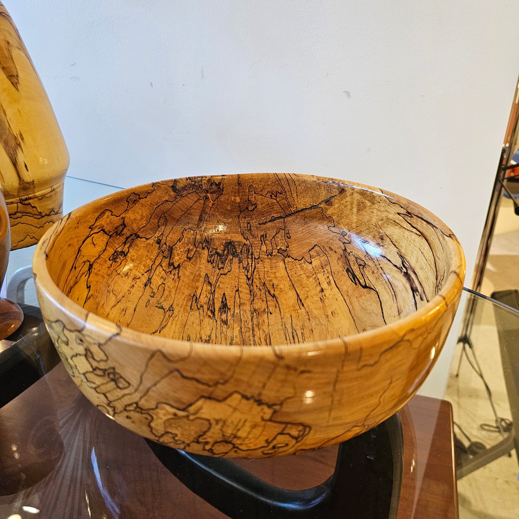 Handmade Spalted Maple Wood Bowl. Signed by artist, John Schmidt.