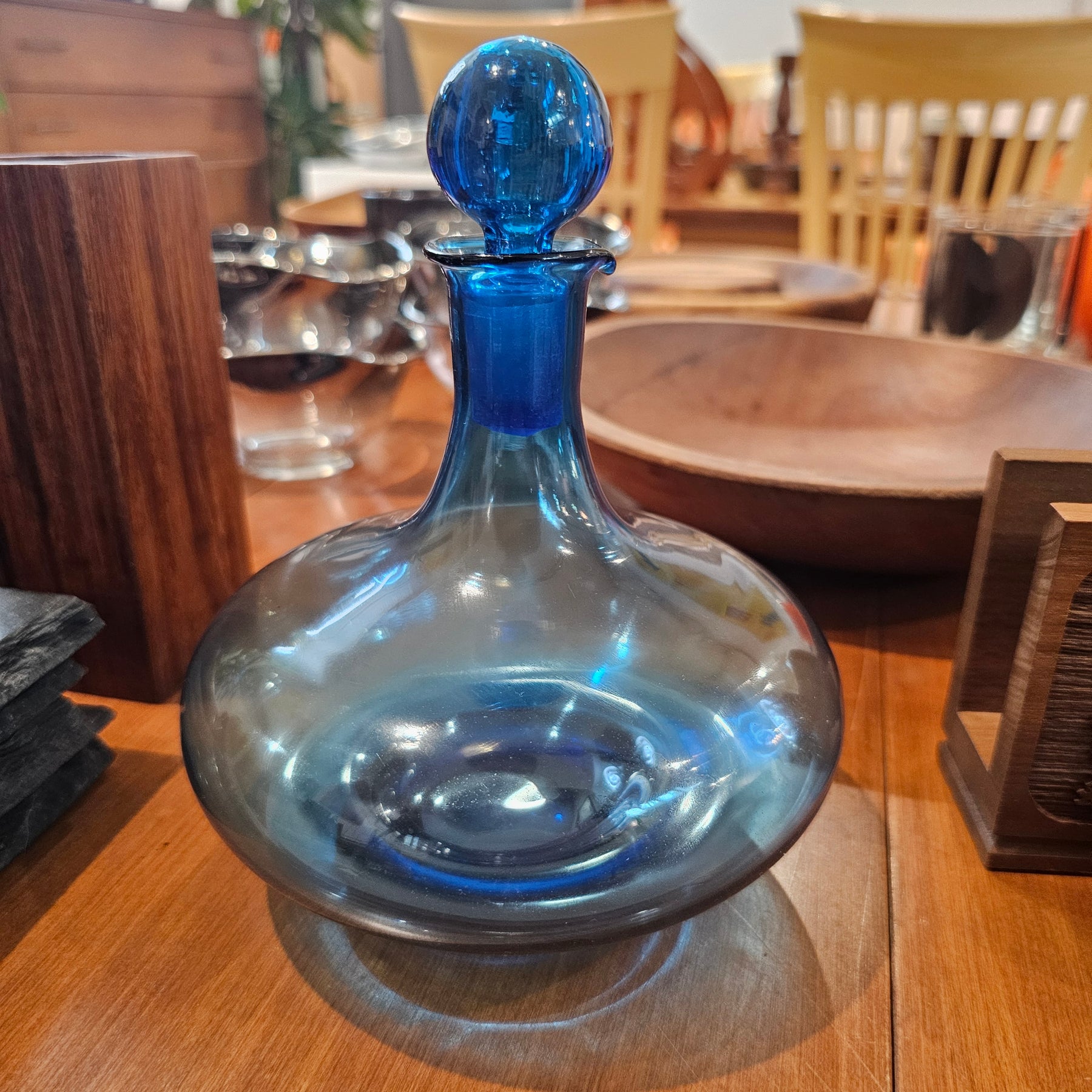 MCM Blue Art Glass Decanter. Includes original stopper.