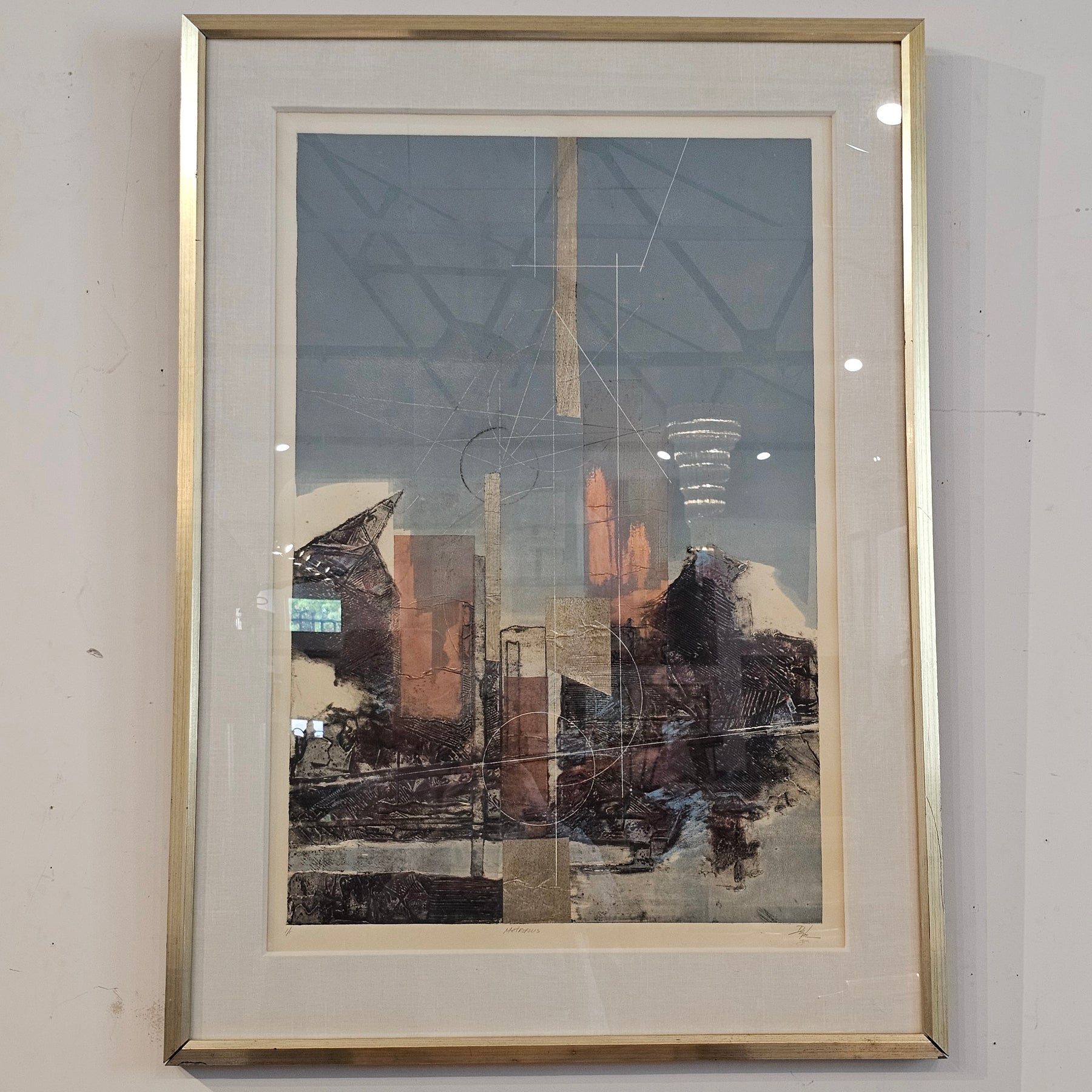 Signed original artwork titled 'Metropolis'. Numbered 1/1. Framed has some wear present.
