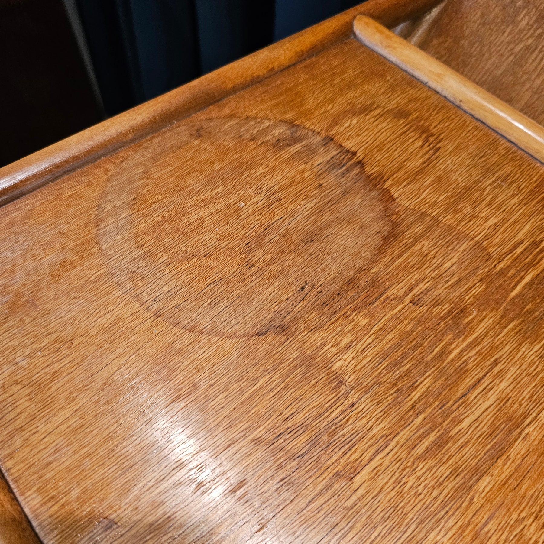 Exceptional T.H. Robsjohn-Gibbings magazine table manufactured by Widdicomb, fashioned from exquisite natural walnut in the 1950s. This generously proportioned side table offers elegant dual-sided magazine storage, embodying a significant chapter in design heritage. The piece displays a charming patina with modest cosmetic imperfections, including subtle water rings and occasional discoloration.