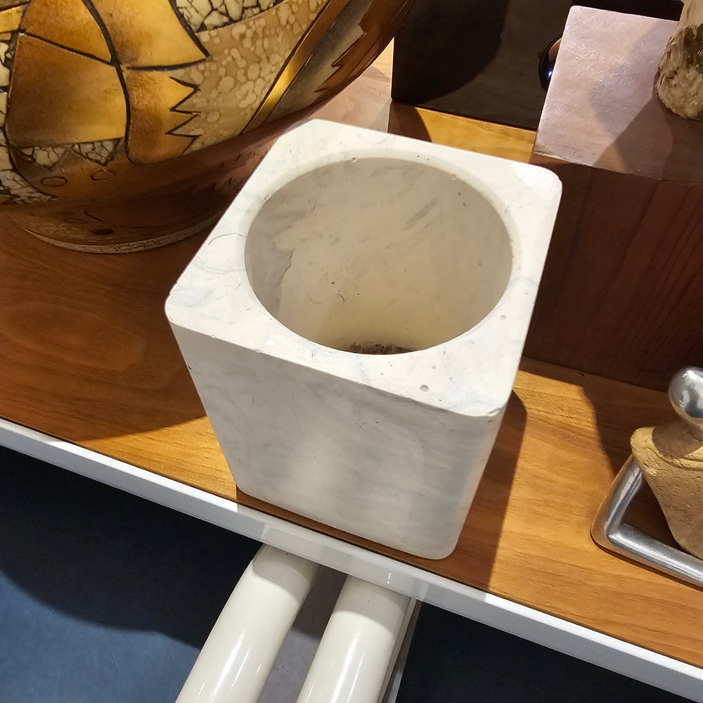 Pair of Vtg Travertine & Brass Hurricane Candle Holders