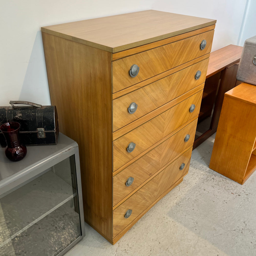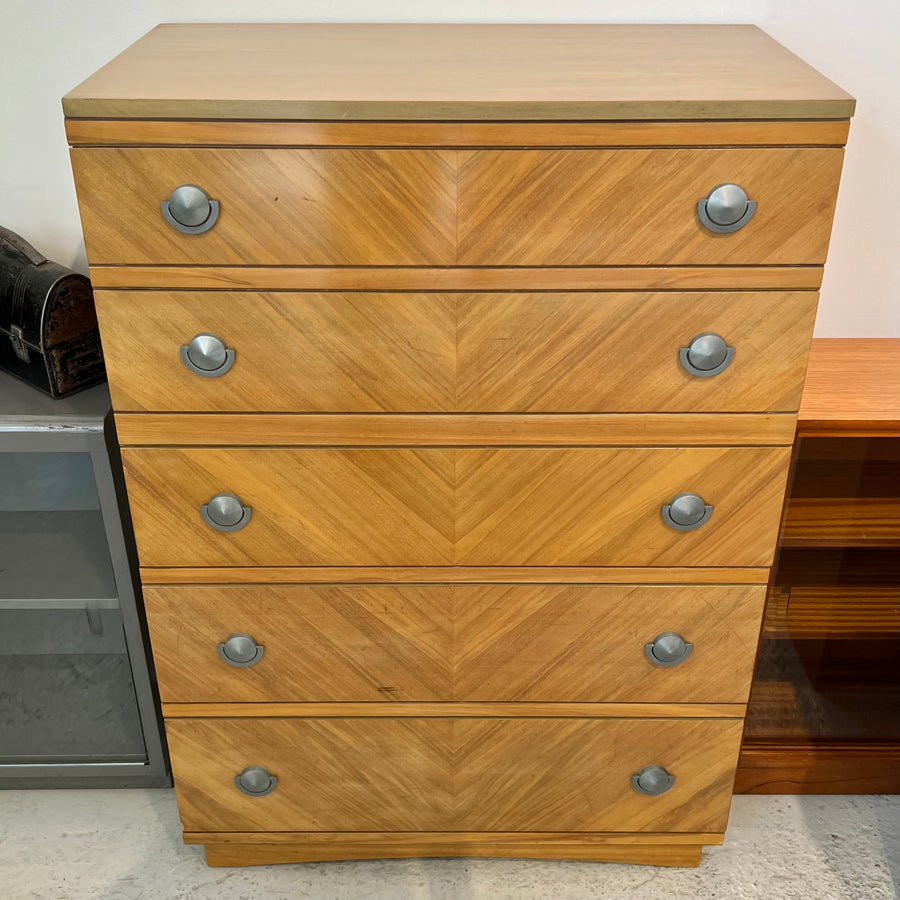 1950s United Furniture Corp. Blond 5-Drawer Tallboy Dresser