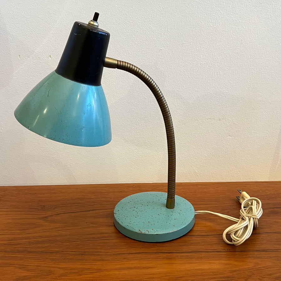 1960s Aqua/Brass Gooseneck Desk Lamp
