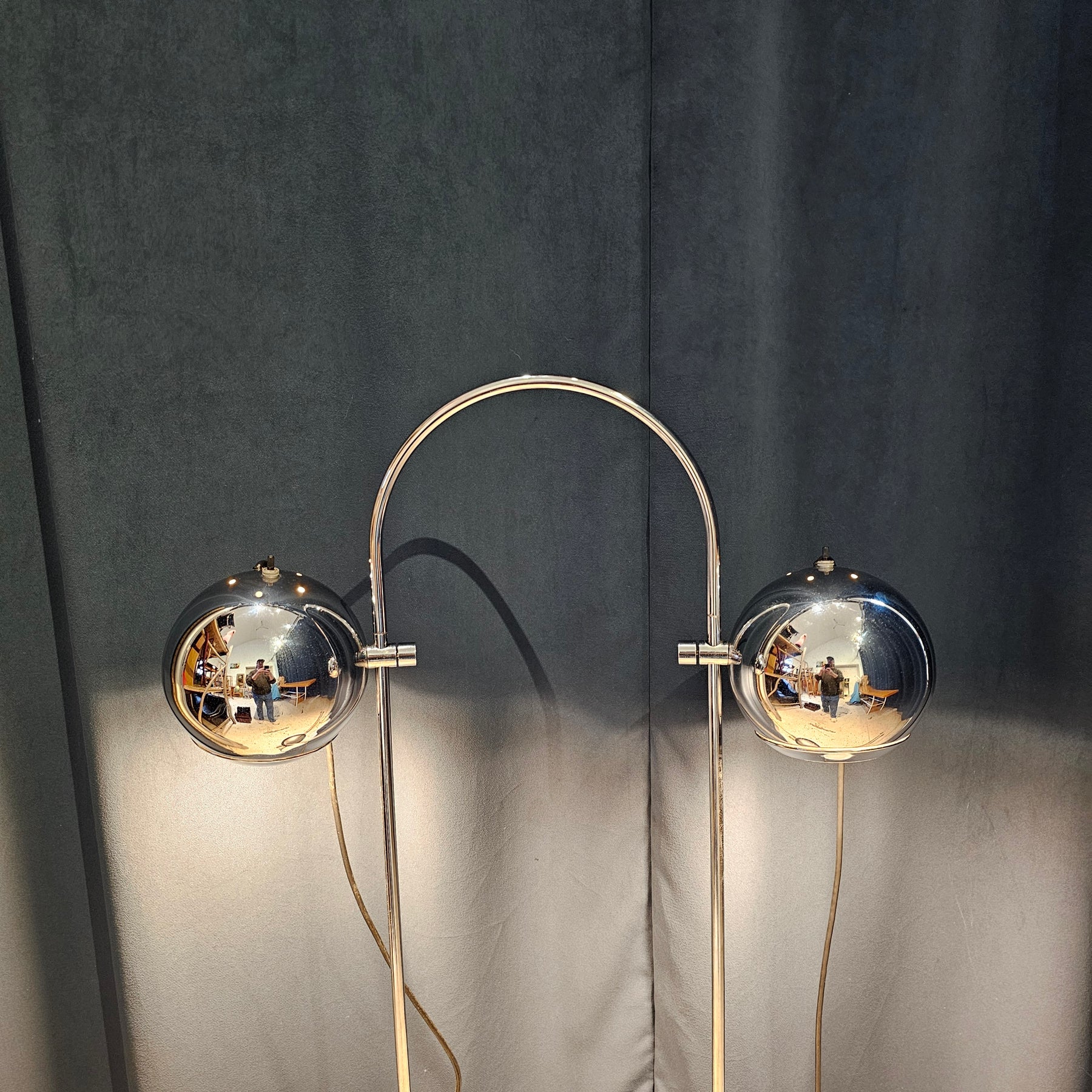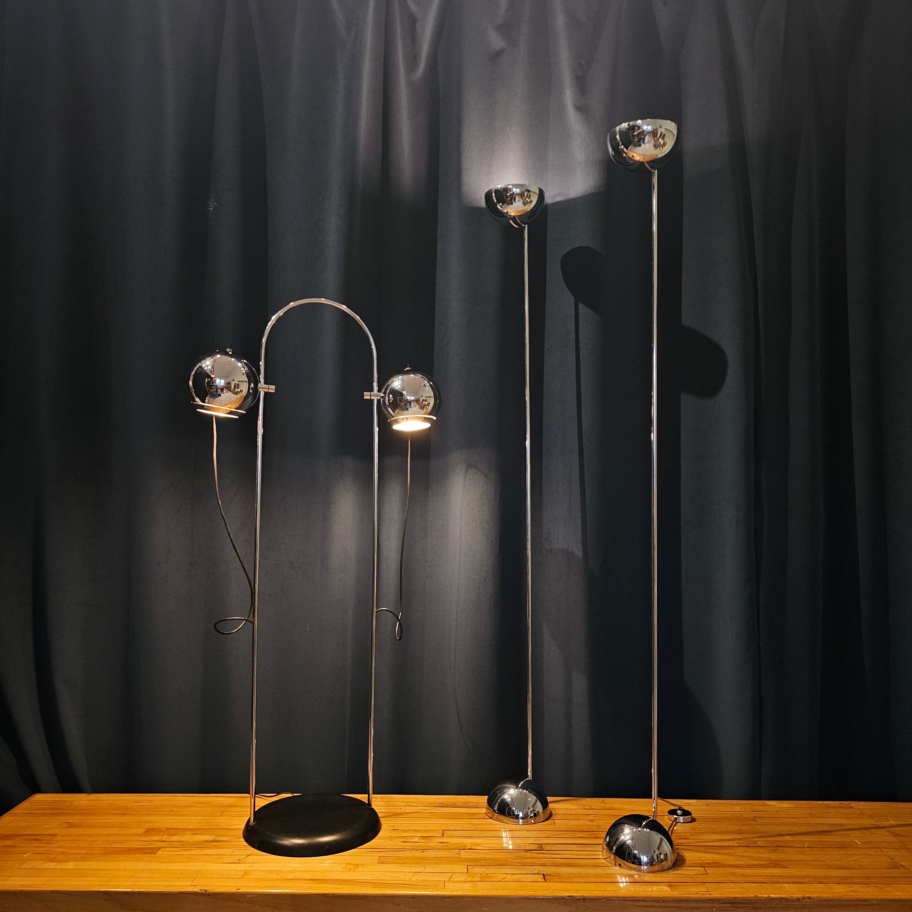 Stunning 1970's Chrome George Kovacs Arc Floor Lamp.   Each shade rotates and is adjustable around the full arc.   Great overall vintage condition.