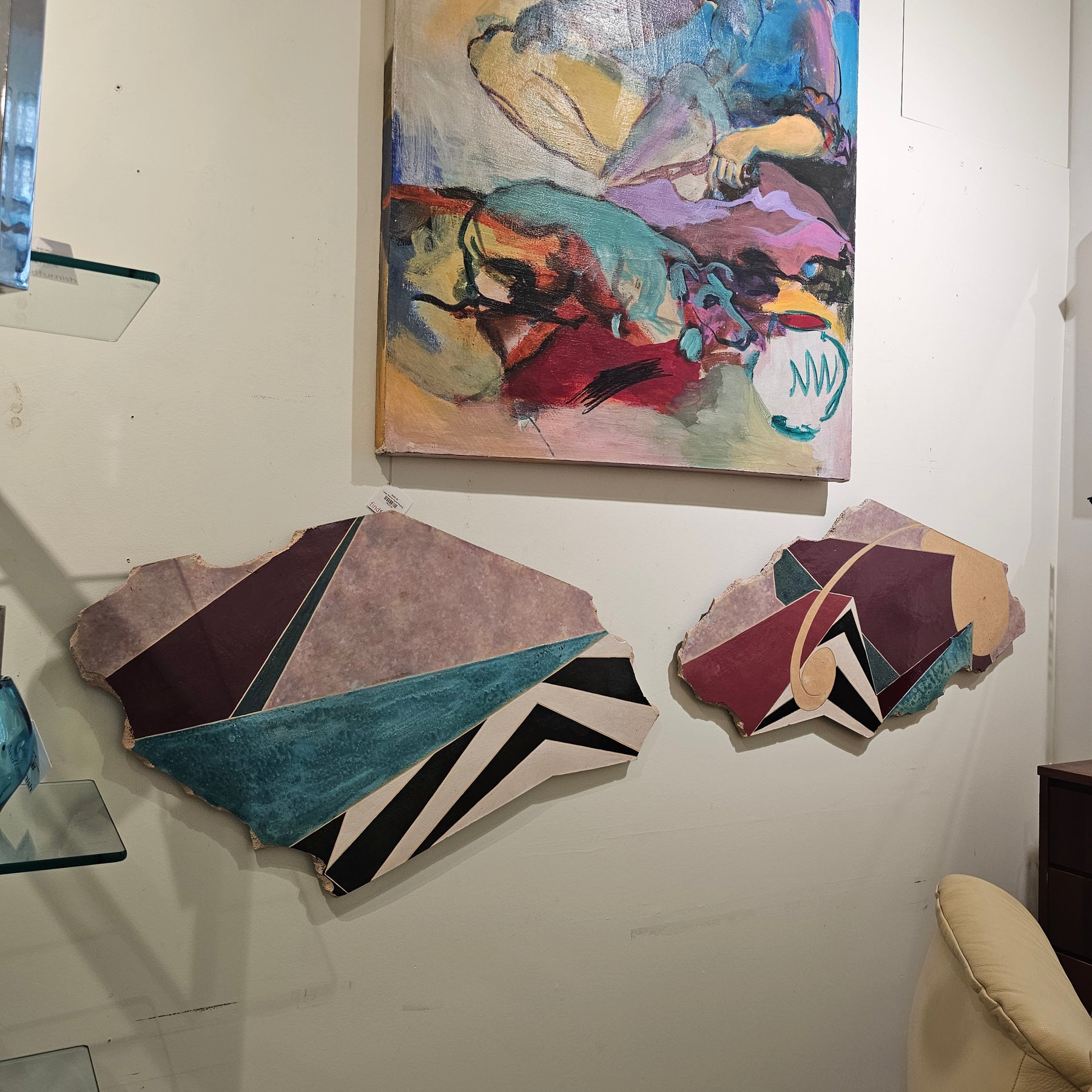 The smaller piece measures 22 inches high by 42 inches wide and 2 inches deep, while the larger one stands 26 inches tall, 44 inches wide, and 2 inches deep