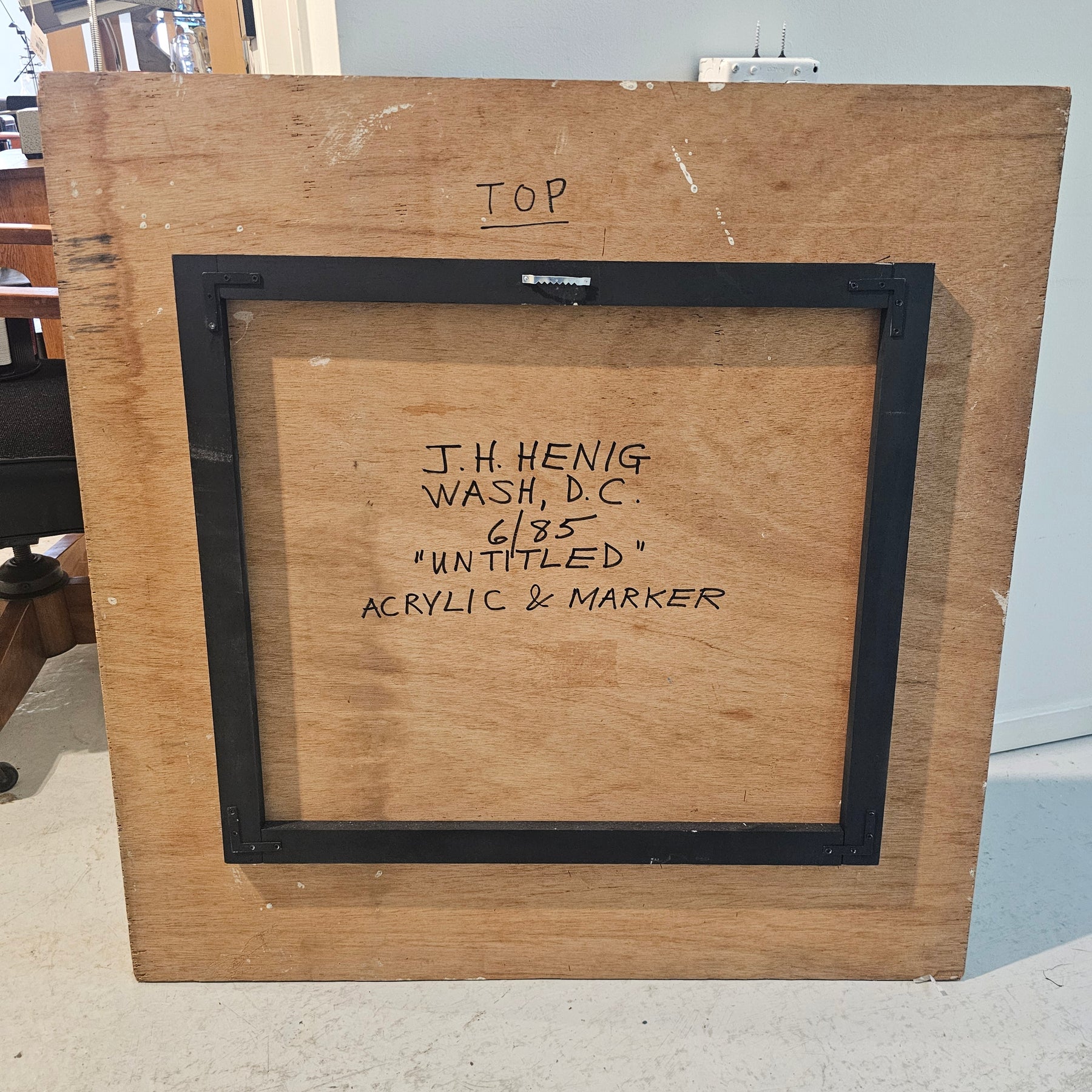 Original J.H. Henig Acrylic & Marker on Board. Untitled. Hangs from floating frame, allowing piece to lay slightly off the wall. Dated Jun, 1985